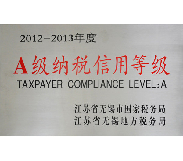 - 無(wú)錫市3A級(jí)重合同守信用榮譽(yù)證書(shū)