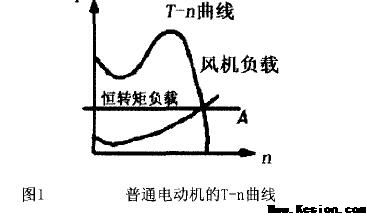 圖l是典型的異步電機的直接起動轉(zhuǎn)矩曲線,該曲線充分說明想要平穩(wěn)地使異步電機起動,只有在電機T—n曲線高于它的負(fù)載阻轉(zhuǎn)矩曲線的條件下,起動才能在曲線的交點(A點)穩(wěn)定運行。T-n曲線相比負(fù)載阻轉(zhuǎn)矩線高得越多,則起動加速越快,反之,高出負(fù)載阻轉(zhuǎn)矩線越少,則起動加速越慢。