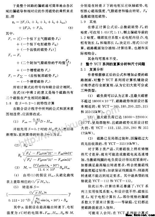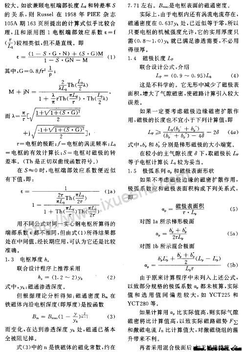 為此,特從基礎(chǔ)政府開始重新進行研究,作者在適當(dāng)調(diào)整半交叉磁極的設(shè)計公式后,對YCT系列進行全面核算,現(xiàn)提供給讀者,在調(diào)整設(shè)計時參考。