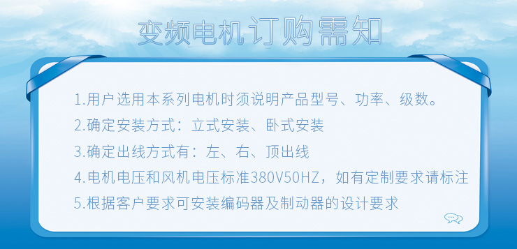 7、電動(dòng)機(jī)的額定電壓380V,頻率50Hz,也可根據(jù)用戶(hù)要求確 定額定點(diǎn)的電壓和頻率