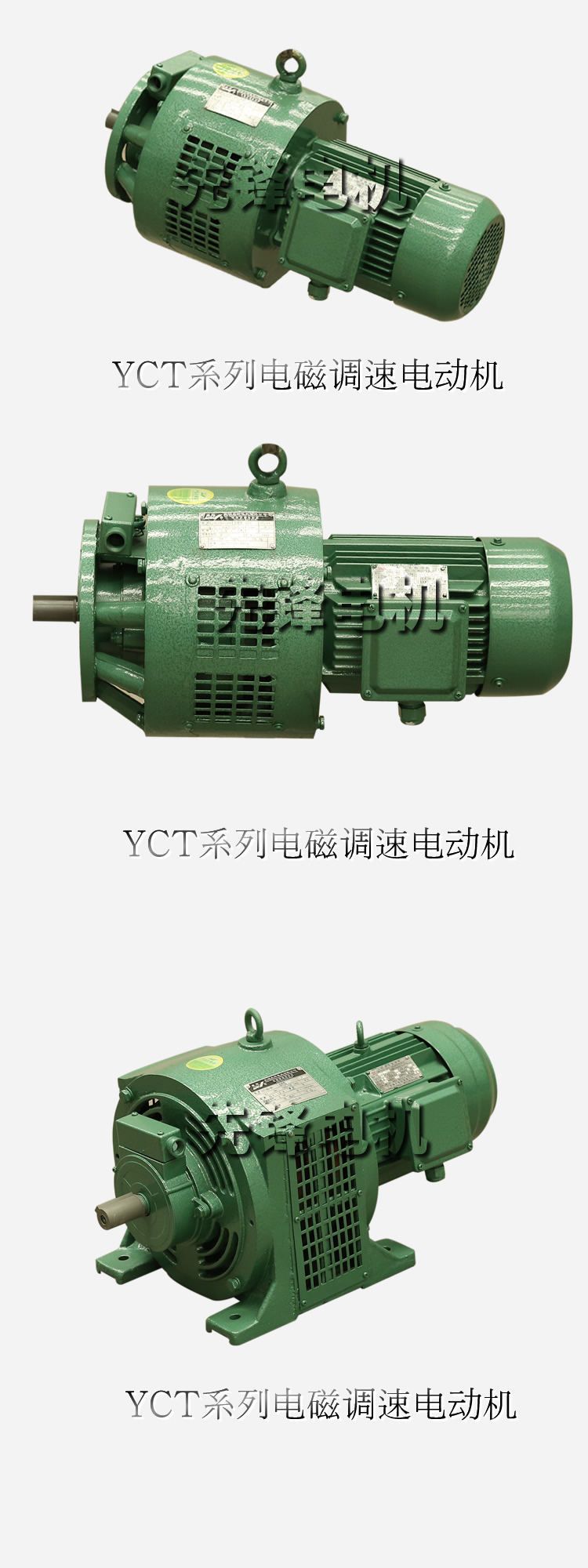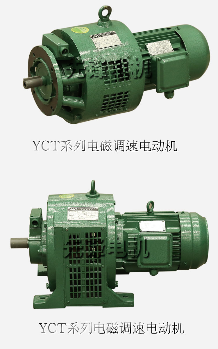 YCT系列電磁調速電動機是機械工業(yè)部組織的Y系列異步電動機的主要派生系列。電磁調速電動機由拖動電機(Y系列電動機)、電磁轉差離合器和控制器三部份組成,可用于恒轉距負載場合,特別適宜在遞減轉矩負載中使用(例如離心式水泵和風機),有較明顯的節(jié)能效果。